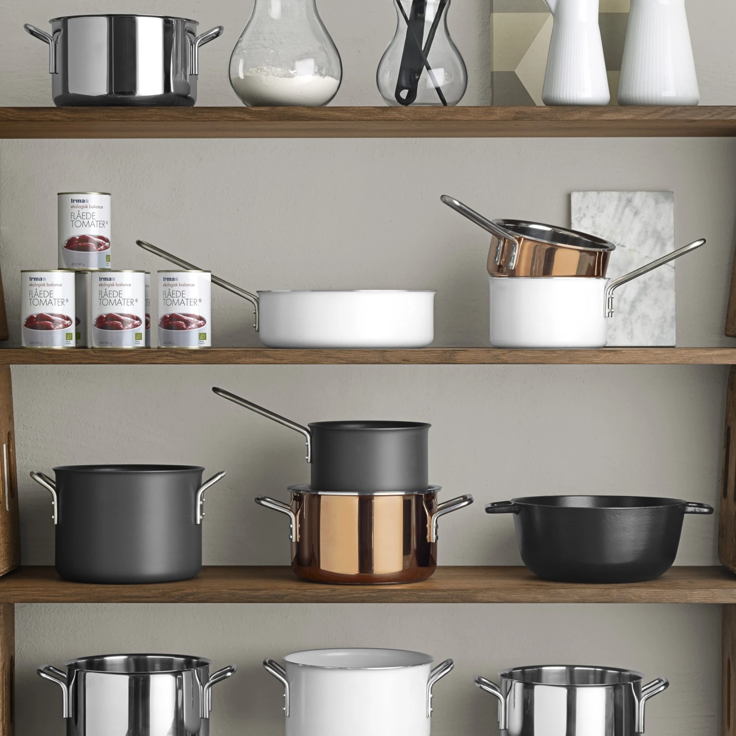 Op zoek naar een nieuwe pannenset? Ga dan voor de Eva Trio Collection van het Deense merk Eva Solo! De roestvrijstalen set bestaat uit een steelpan, twee kookpannen in verschillende groottes en een pasta-vergiet: alles wat u nodig hebt om een lekker diner te bereiden! Voorzien van een stijlvol glanzend, gepolijste afwerking. Mooi!