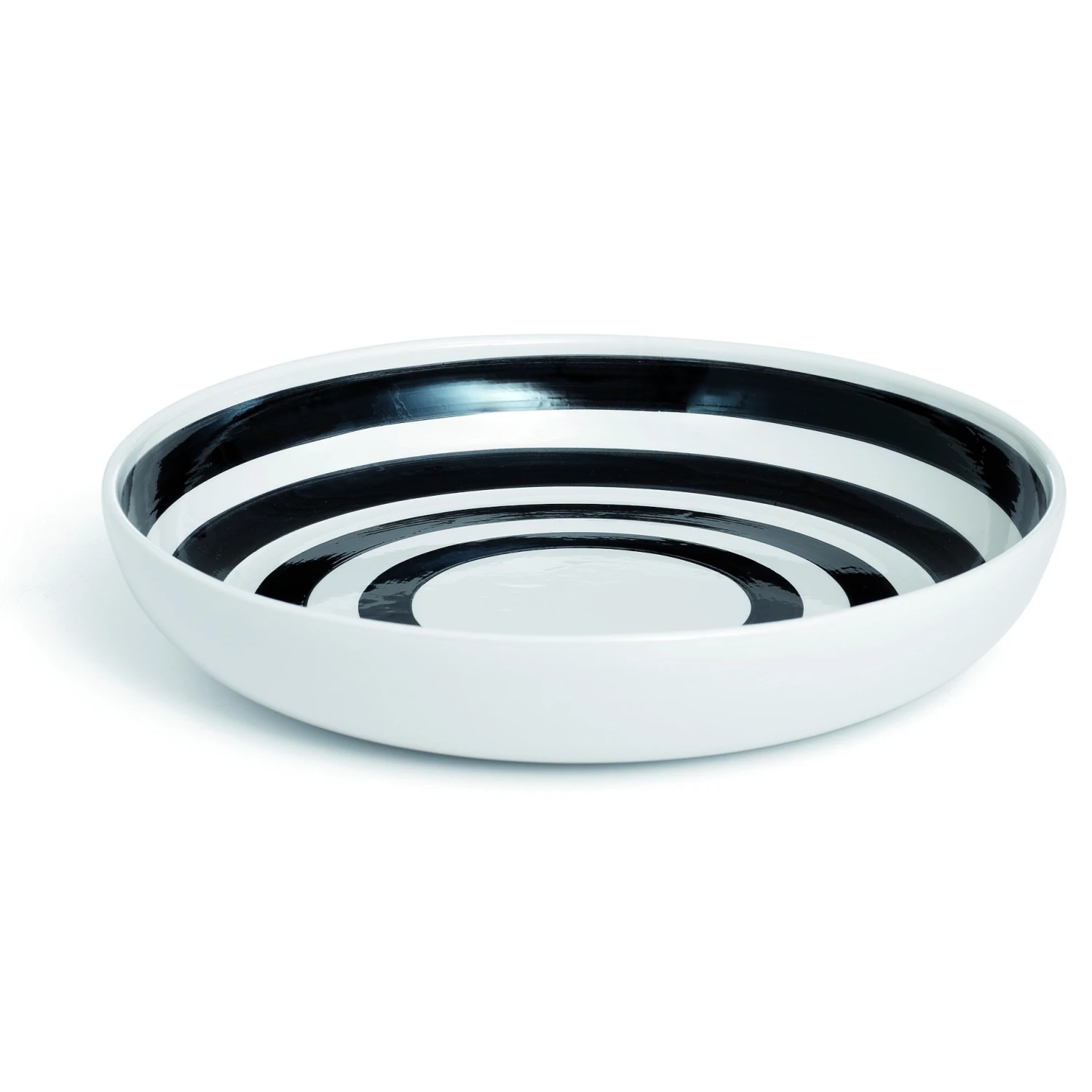De stijlvolle Omaggio serveerschaal is ontworpen door Ditte Reckweg en Jelena Schou Nordentoft voor het Deense merk Kähler. De schaal is gemaakt van keramiek en heeft een klassiek met de hand geschilderd gestreept patroon. Keuze uit verschillende kleuren.