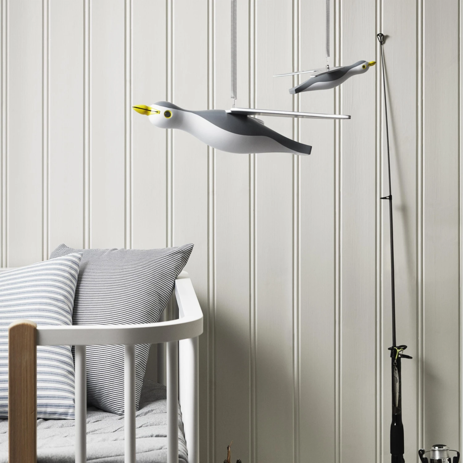 De Kay Bojesen zeemeeuw mobiel is een klassieker die perfect past in de kinderkamer of nautische woonstijl! Voor het eerst ontworpen voor een tentoonstelling in 1954 in een oplage van slechts 23 stuks, is de zeemeeuw nu opgenomen in de collectie houten fierenfiguren van Kay Bojesen. Verkrijgbaar in verschillende maten.