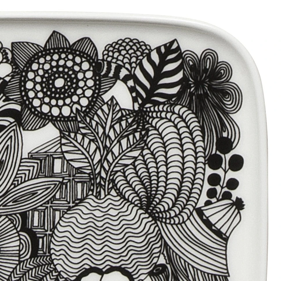 Serveer uw koek, snoep of snacks in stijl op deze kleine Siirtolapuutarha schotel van Marimekko! Ontworpen door Sami Ruotsalainen, is de schotel voorzien van een patroon van Maija Louekari, dat geïnspireerd is door bloeiende volkstuinen. Mooi op zichzelf, maar nóg mooier in combinatie met andere items uit dezelfde collectie!