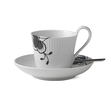 Creëer een fijn moment en drink uw favoriete thee in deze beker van Royal Copenhagen. Karen Kjældgård-Larsen is de ontwerper van The Black Fluted Mega serie. Dat is een herinterpretatie van het typerende Royal Copenhagen Black Fluted Mega. De zwarte bloemen creëren een nieuw contrast op het witte geribbelde porselein. Het verschil tussen dit product en die met benaming 2 is dat het patroon iets anders is. Royal Copenhagen staat voor hoge kwaliteit en unieke items. Verwen dus jezelf met een product dat nooit uit de mode gaat!