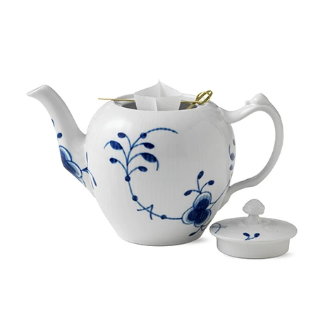 Geniet van een heerlijk theemoment met deze theepot van Royal Copenhagen. Het patroon – genaamd Blue Fluted Mega – is ontworpen door Karen KjældgÃ¥rd-Larsen en is een herinterpretatie van het klassieke Blue Fluted-design. De prachtige bloemen lijken weeldering rond de pot de groeien, bijna als een klimop. Verwen uzelf of uw high-tea gasten met deze tijdloze designklassieker!